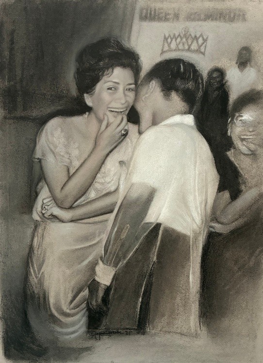 This is a charcoal portrait of my grandparents done on mi-teintes pastel paper. If you look very closely you can see a fine layer of pastel added to my grandma’s skin to accentuate warmth and mood in the piece.