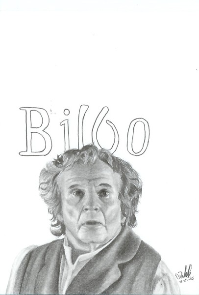 Bilbo!! I took this picture from my Lotr dvd, cause I liked his expression on this one, it was in the scene that he was drinking thee in his house with gandalf!! I think it looks like the picture a lot... I hope you also think so.
