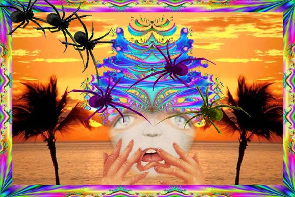 The island girl became very distressed when her new bee-hive hairdo became a nesting place for spiders.