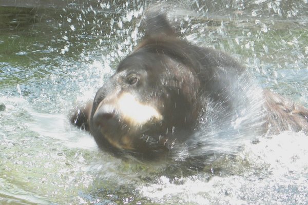 Went to the Jacksonville Zoo today..It was hard to get a lot of good photos because of the wire they use to keep these animals in.i did get a bunch of decent photos.I especially liked this one.I was watching a black bear cooling off in his pond.It was very hot today.A lot of people were taking many pictures,but i waited becaise i knew sooner or later he was going to shake off some of that water like a dog.And this photo is what i managed to catch.