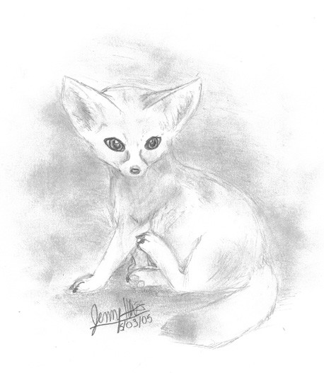 May 3, 2005 I love fennec foxes, and believe it or not this was for cartooning class. We drew an animal realistic then as a cartoon. I liked both a lot. This puts a smile on my face. I drew it on printing paper though and I wish I had out it in my sketchbook.
