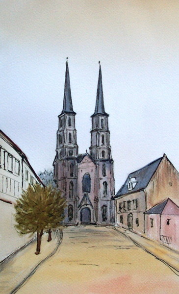 wonderful flowing street overlooked by the staid and uncompromising position of the Church holding sway over the block activity.