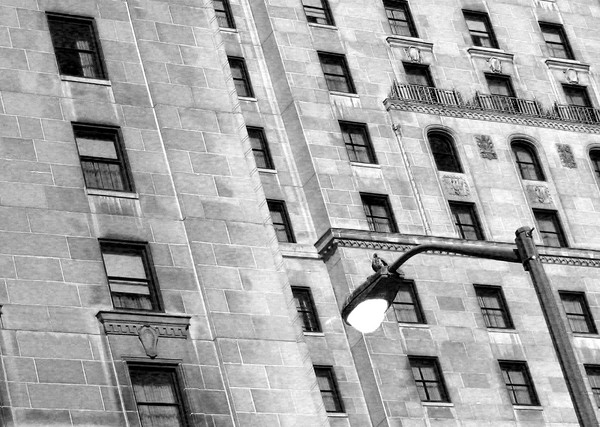 I took this well over a year ago, and only recently thought about cropping it, and converting it to Black and White. Downtown Toronto, Through a bus window.