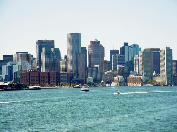 A view of the city of Boston, shot from the top deck of the Spirit of Boston while cruising Boston Harbor. Added in this one are a few boats in the harbor.