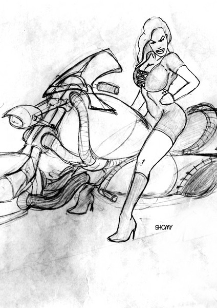 very cool! i love stuff like this! very well rendered woman, and cool hover bike (im assuming)