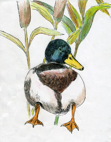 Another drawing to show classes the possibilities as the students prepare for an art contest on the subject of birds that are hunted and the dogs that help the hunters. Pen and Ink had been used for their previous projects. Now they need to start using it for mixed media drawings. Pen and Ink with Colored Pencil. 8 1/2" x 11"