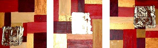 This is a set of three beautiful textured paintings, my favourite so far! The colours are really rich and the gold leaf gives a lovely contrast to the rough surface of the paint.