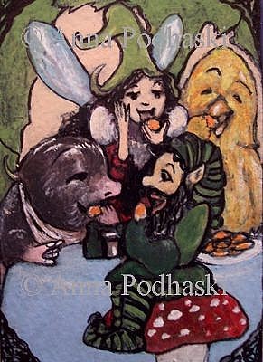 Mole has a very funny story to tell while sharing a plate of marmalade crumpets. Hi everyone!! This is an actual ORIGINAL MINIATURE PAINTING on heavyweight 140 coldpress professional artist paper using acrylic paint and archival ink.