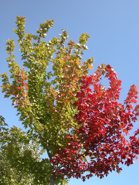 ON a perfect September, fall day I shot this Maple halfway turning it's crimson red for the year.