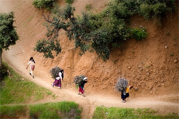 Wow! That is a great photo and these women look like they are carrying bundles of sticks. Is that correct? They are bent so it must be anextremely heavy load...and we complain about OUR jobs!