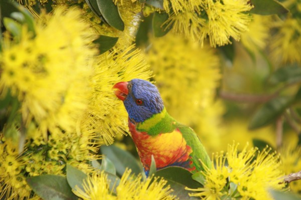 A Rainbow Lorikeet enjoying The delicacies the wild has to offer. Canon EOS 400D; Sigma 50-500mm lens.