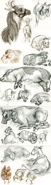 Observational sketches done in ink pencil with a waterbrush at the Royal Winter Fair in Toronto. All art within 30 seconds to 20 minutes.