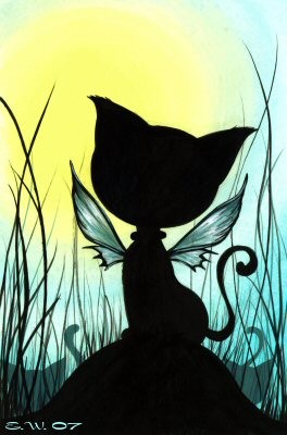 This is a fantasy silhouette OSWOA painting titled "Pixie Wings". The painting was made with the use of acrylic paints on a 4" x 6" sheet of watercolor paper and is currently at auction on eBay.