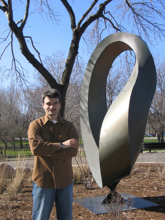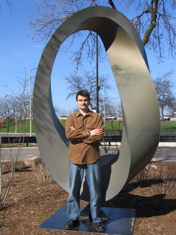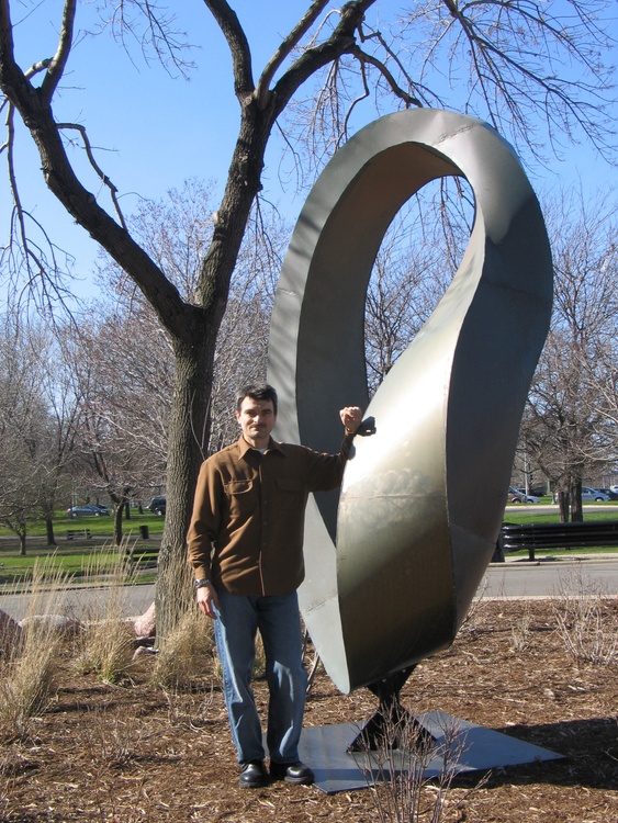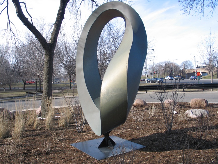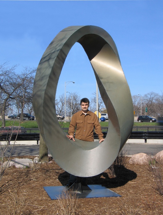 Double Mobius Strip - bronze, patina, 14x5x4 feet. The Möbius strip is a surface with only one side and only one boundary component. In this work I combine two Mobius strips together with common edge. The result is one "double" rich and fascinating 3D form, representing the idea of continuance and endlessness of life... https://en.wikipedia.org/wiki/M%C3%B6bius_s trip