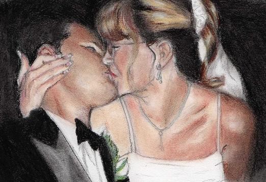 Pastel portrait I drew of me and my husband on our wedding day.