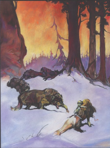 I must clarify that this is not my design. This is a Frank Frazetta painting that I did in pastel for a project in my color theory class. The object was to take a piece from your favorite artist and reproduce it to better understand the way color can give depth to an image.