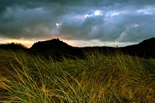 a stormy evening. I lit the foreground grasses with flash and a time exposure for the sky. Copyright: Mike Leale
