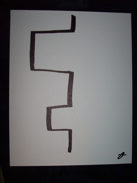 The origin of this piece has long haunted me ever since its creation. I had sat down at the canvas intending to depict something vividly different. The next thing I remember is gazing at the masterpiece shown here. I was able to avert my eyes only for a moment to glance at my wristwatch, and to my dismay I had realized that three hours had since passed. I have named this mysterious piece "i", and it is pronounced like a long e in the English language, with a slight inflection at the end as if asking a question.