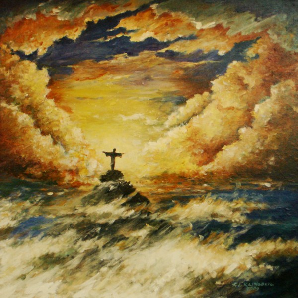 This painting measures 20"x20" an is painnted on a deep gallery wrapped canvas. the painting is finised of with a narrow strip frame with complements it nicely,while not taking away from the painting, This painting is also part of my "Springsteen" series. " At the end of every hard earned day people find some reason to believe" Being a Christian, it is the open arms of Christ that clears my cloudy skies and fills my life witk the warmth of his love.