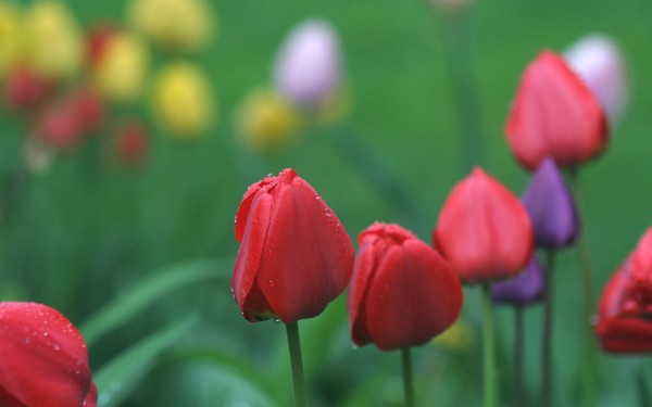 Just after the rain stopped, the colours emerged among my mom's tulips!