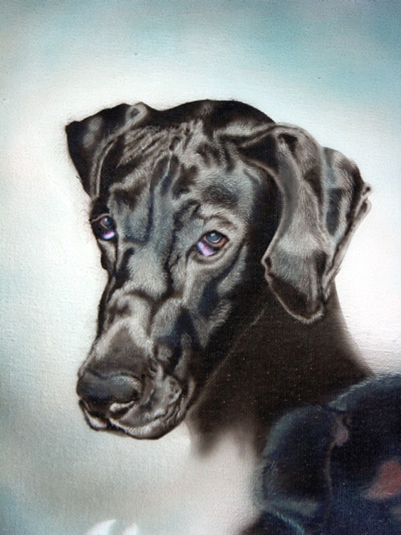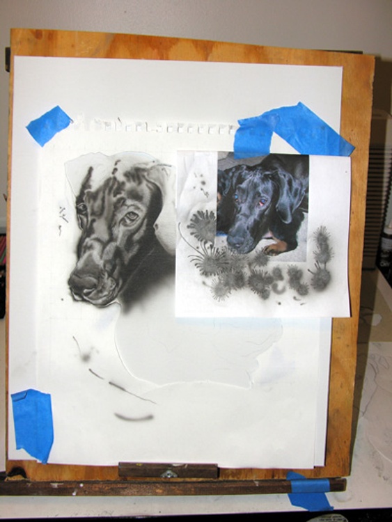 Beautiful colors,detail and expression! The paw prints are also a nice effect.