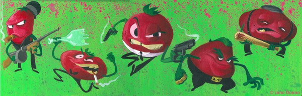 12" x 24" Acrylic on wood panel canvas My interpretation of the film "Attack of the Killer Tomatoes"