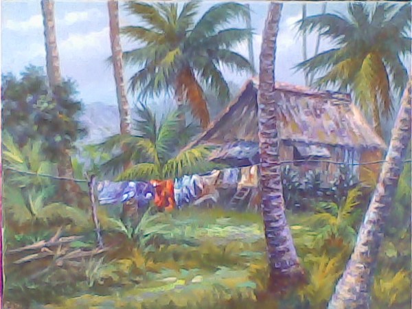 "ON THE SPOT PAINTING," Barrio Alitap, Mauban, Quezon by Reynaldo Fernandez y Trinidad, Oil on Canvas 12"x16"