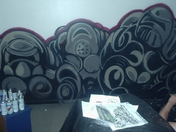 My very first mural with spray paint, turns out myy cousin justin wanted 3 bad ass lookin robots on his bedroom wall and i wasnt about to turn that down.