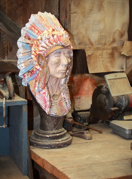 Copyright/watermarked Painted Indian bust from Cabot's Pueblo Museum
