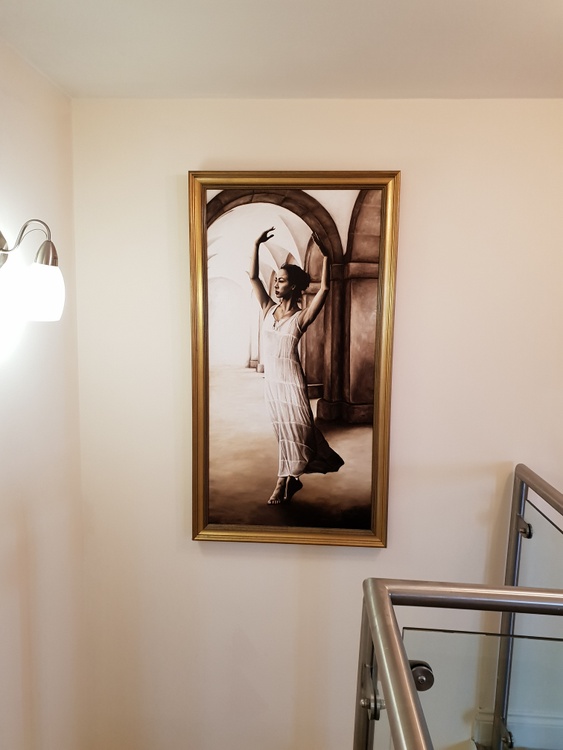 Original oil painting produced on stretched 120cm x 60cm canvas using a knife, mixing only on the canvas using a limited colour palette.
