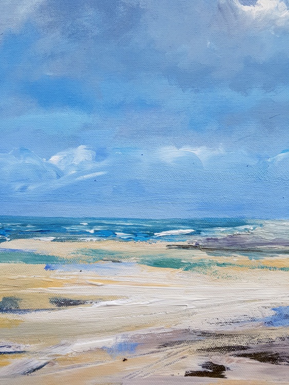 Beautiful clouds in the sky and a empty beach....wow....freedom!! Beach Domburg in Zeeland (Netherlands). “The beach is not a place to work; to read, write or to think "(Anne Morrow Lindbergh) Product Information: -Painted on quality canvas 70x70 cm -The artwork has a certificate of authenticity, personalized signed -You dont need a frame, there is a a hook on the backside -Professionally packaged in protective materials -Shipped in cardboard box