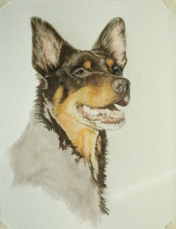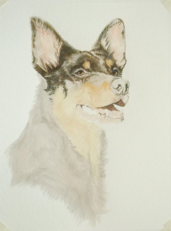 It once was common for Koolies to have one or two blue eyes, but since the DNA discovery linking blue eyes in Koolie to the merle gene, which creates blind/deaf pups, improved safer breeding practices with the encouraged merle to solid mating for the health of the breed and not the looks. We have seen a decline in blue eyed Koolies. The common eye colour today is brown eyes for reds and brown or black eyes for blacks, and tones of these two primary colours, occasionally you can still get blue eye(s), or part thereof, like chips, crescent even half but it is no longer common. Australian Koolie colours can be red or blue merle( patterned); solid (one colour) red/chocolate or black; bi (two colours) red and white, black and white, black and tan, red and tan; tricolor (three colours) including merle, normally with tan points and a white chest spot. Coat lengths come in smooth, short, short rough, medium, double coated or single, with feathers on their legs or without; long coats are not common (dogbreedinfo.com).