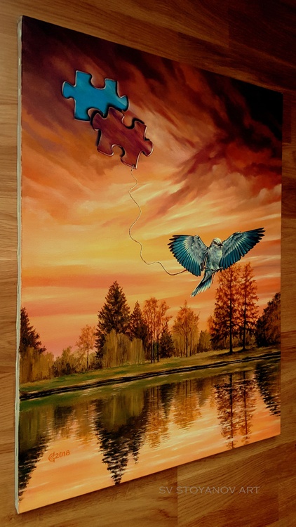 original oil painting, fine art, magic realism, 2018 $7000.00
