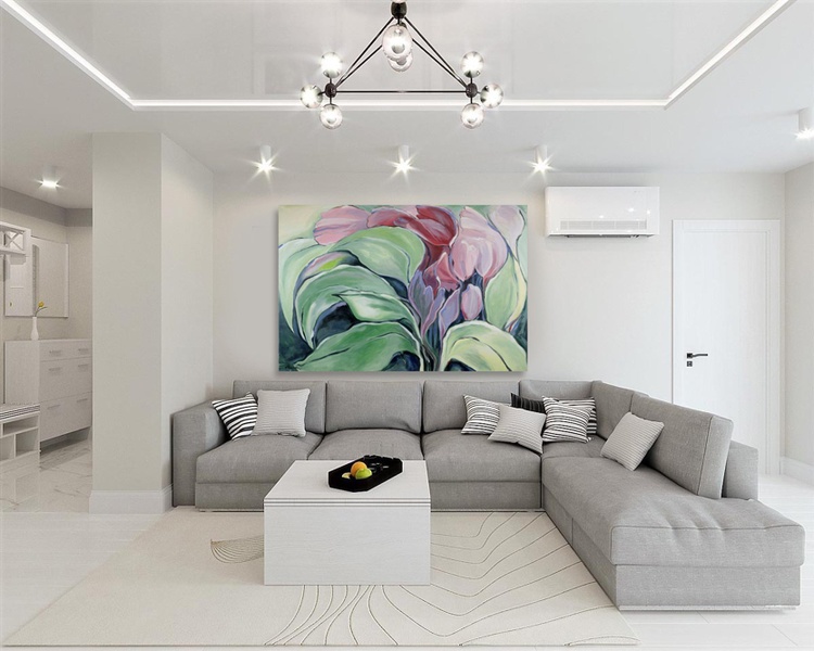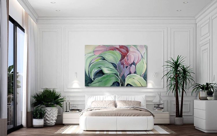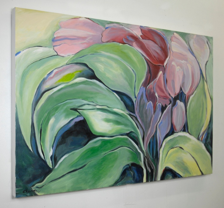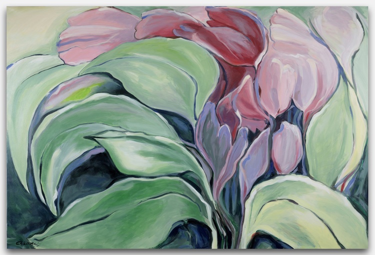 Huge Abstract, Tropical Floral, Flower, Garden, ORIGINAL Painting, 48" x 72" ,Modern Art, Original Elizabeth Mukerji , Wolf Run Ranch, Acrylic