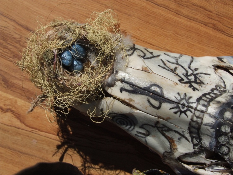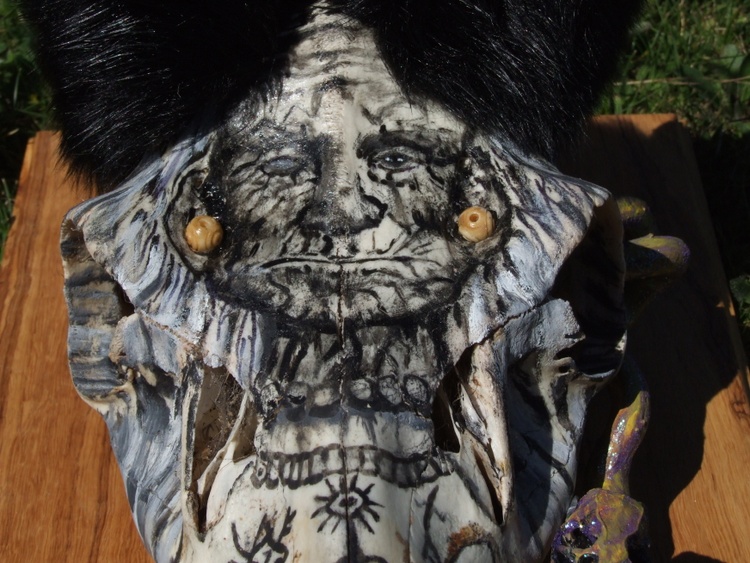 Bound in spells and dreamcatchers, animal totems and spirit guides, the Medicine is bound to the earth to serve her first. Oil painting on deer skull