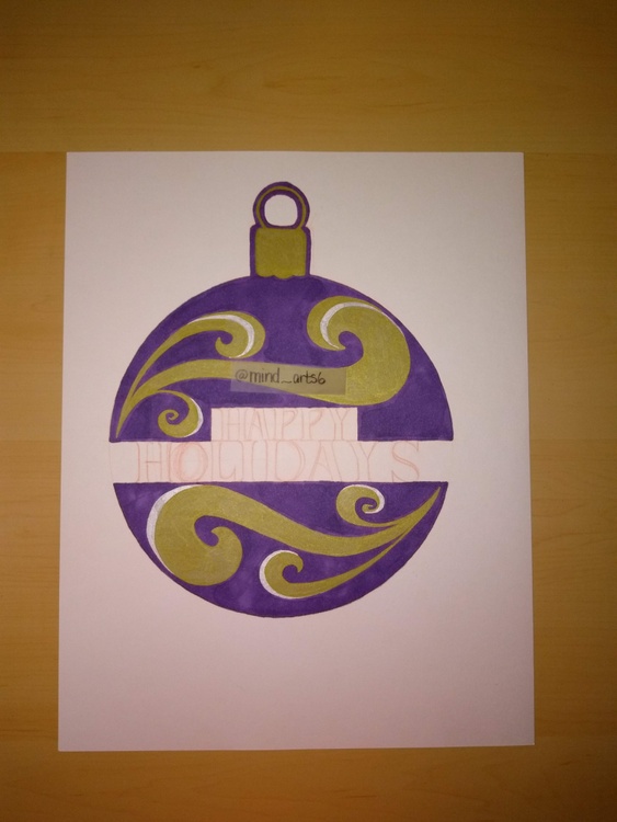 Purple ornament with gold,silver and jewel detail. marker drawing