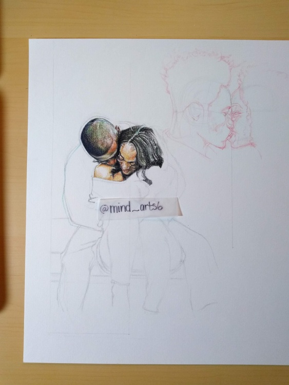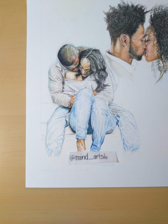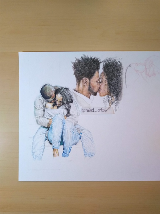 realistic valentines couple colored pencil drawing