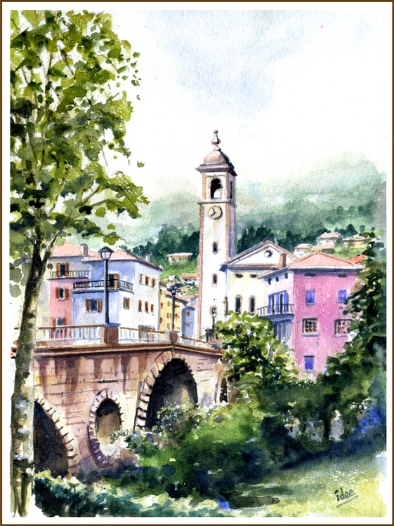 Good watercolor with blue sky, mountains and tall buildings and rock formations along Soca River.Maria Anna Machado 03 Mar 2020