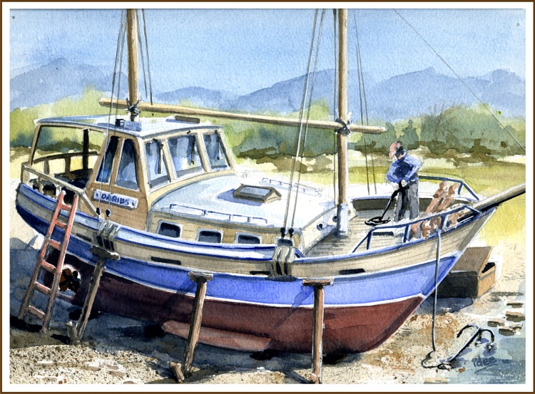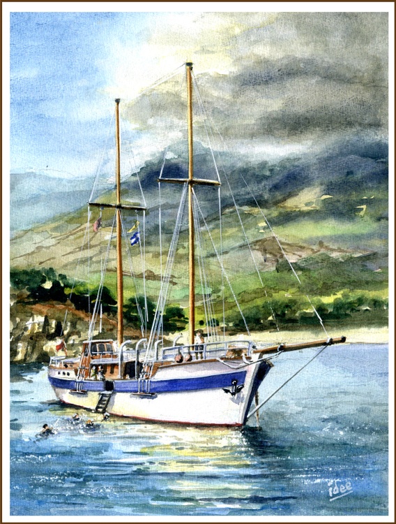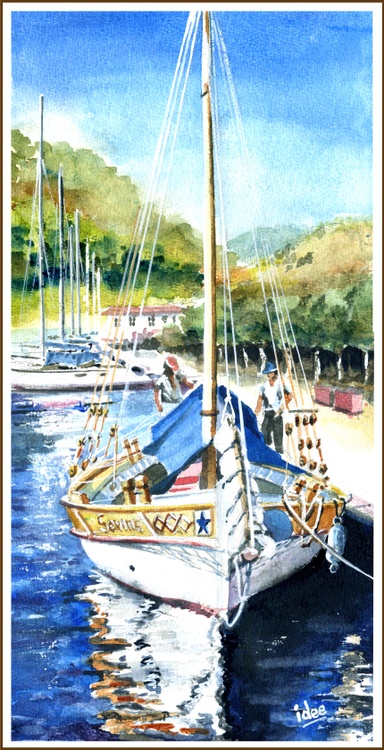 A gorgeous painting and yacht. Perfectly done watercolor, light, exact, airy, translucent and colorful. Have a super day.