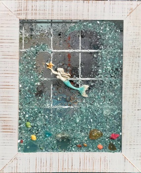 This beautiful piece measures approximately 16 x 20 in a distressed wooden frame available in teal, white or grey. Each piece is uniquely designed and signed by the artist.