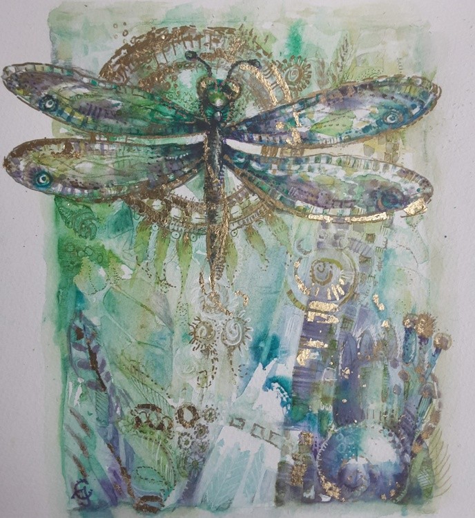 Watercolor 30×40 With goldleaf and goldpowder