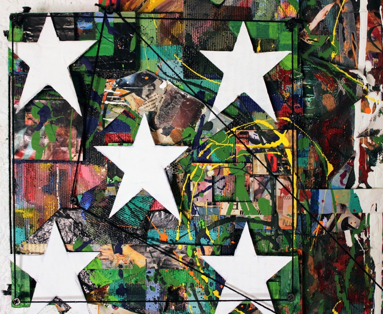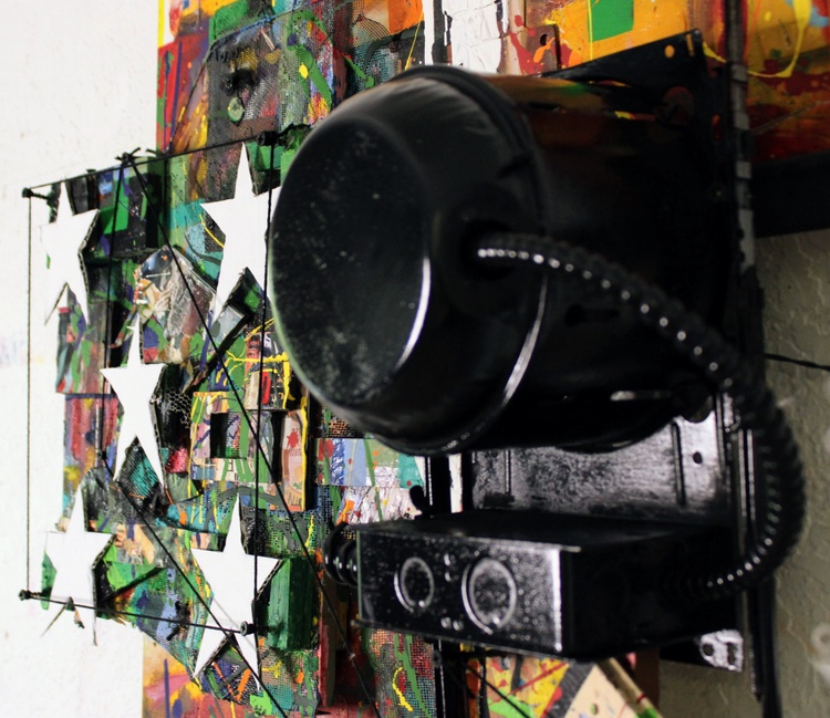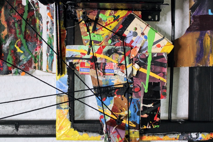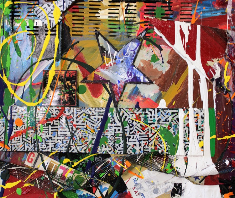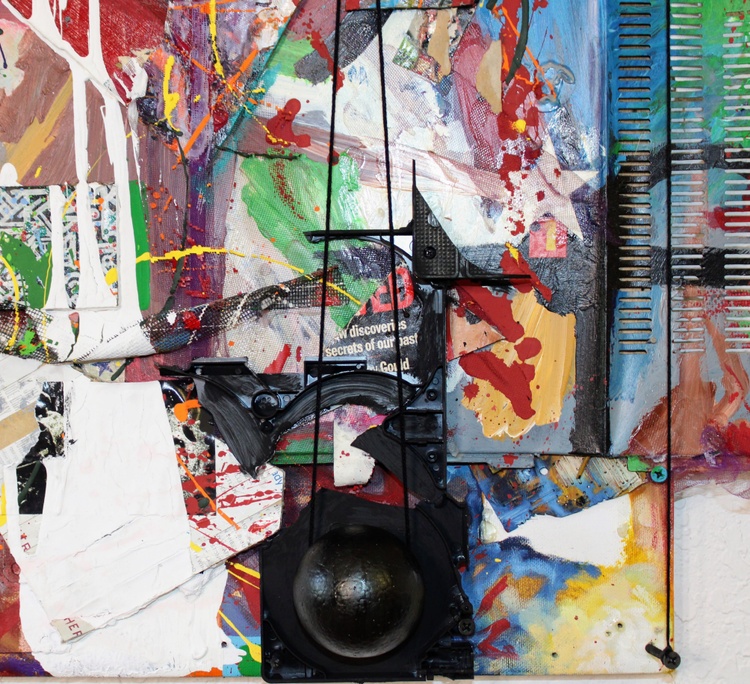 A battle of wills, ideas and time. A stop and start piece that ran over many months, then laid dormant unfinished for years. Suddenly the feeling of inspired inspiration along with hours and hours of staring, manipulating, destroying, restoring and mental masturbating finally gave birth to 'Black Steel in The Hour of Chaos'.