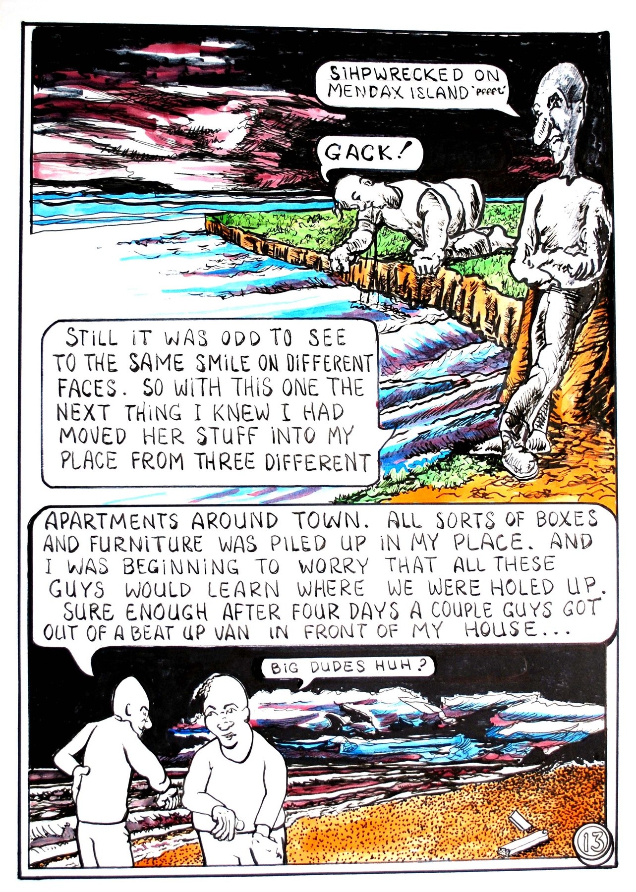 Page #13 (thirteen) of "Full-Tilt Comix" - Each page is 20 by 14 inches. Inks on various papers.