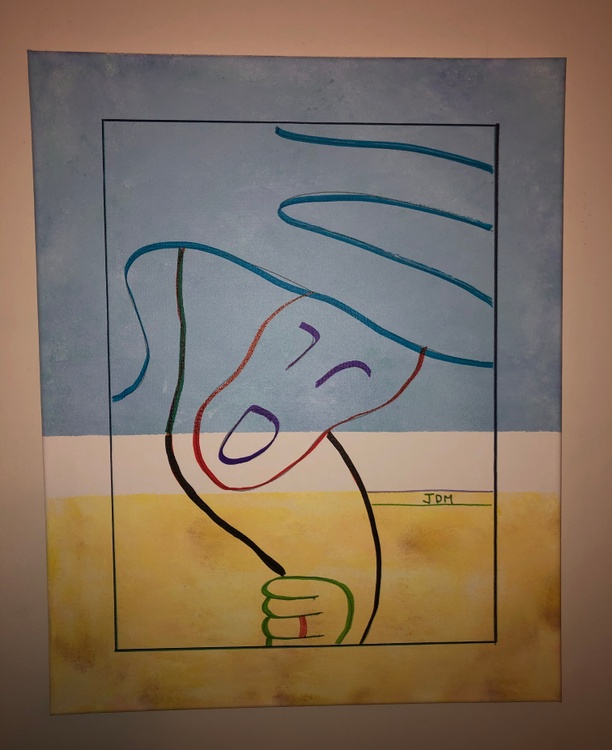 16" x 20" canvas with acrylic base and oil pen figure. I channeled David Hockney when making the water (which is the central figure of the painting). The project image was an experiment of how I wanted the painting to to look but decided not to go in that direction . . .