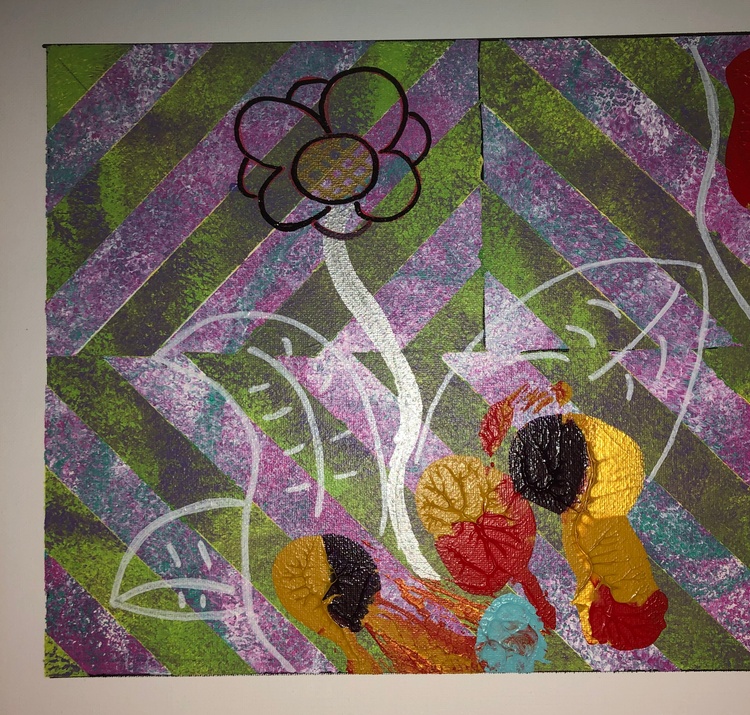 24" x 12" canvas with acrylic paint and oil paint pen flowers.