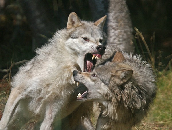 Two Gray Wolves in a fight