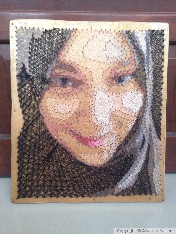 Im really excited about this one. This particular work is a portrait of my girlfriend :)) Since its a pre-order, feel free to customize the size and as well as the stain! --- If you want to give a special gift for you love ones, just give me the portrait/picture of them, and i'll make string art portrait out of it! To work with this piece, i need to get the smallest nail i could ever find because i need more detail in it. And this is how it turned out. Of course this is worth hours and hours of working! --- The size of this piece is 40x60cm --- For more information, contact me via email: [email protected] and follow the instagram of my string art projects here: @pelukisbenang or just follow my personal instagram here: @aditkasim -- SPREAD THE LOVE!!