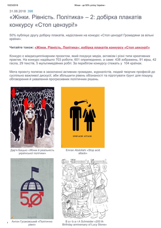 Lucy Stone (1818 - 1893) Book Illustration for “Remembering the Ladies: From Patriots in Petticoats to Presidential Candidates” by Carl Simon Levin, illustrated by 35 artists (USA, 2016), Illustrations (p.43) Lucy Stone (1818- 1893) Purchase options, e.g.: Amazon: http://amzn.to/2dnJWDk Barnes & Noble: http://bit.ly/2dcmxrd LINK PUBLICATION: Slides below, 2018 - 200 th Birthday Anniversary of LUCY STONE 5 th International contest "Stop Censorship. Citizens for free countries http://50vidsotkiv.org.ua/zhinki-rivnist-politika-2-dobirka-plakativ-konkursu-stop-tsenzuri, 2018 - 200 th Birthday Anniversary of LUCY STONE 5 th International contest "Stop Censorship. Citizens for free countries . "Women.Equality.Politics", 2018, http://www.americahousekyiv.org, https://bit.ly/2lY70lN "The Centennial of Women’s Suffrage & Empowerment" Interesting Articles: Issue number 47 of GSL magazine, March 15, 2020, http://gardenstatelegacy.com/NJSuffrage.html Illustrations featured in article "Reclaiming Our Voice" by Carol Simon Levin, https://bit.ly/3axVPWg