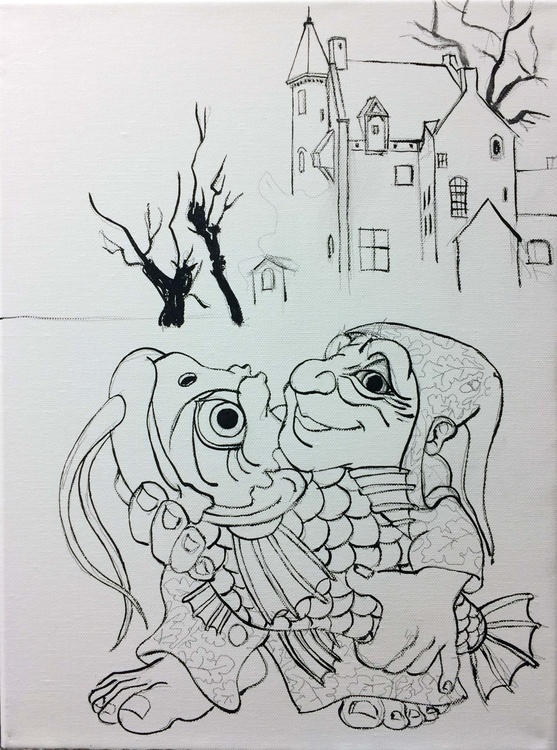 "Lucky Fisherman (Against the background of the Flemish landscape in the style of F.Cruseman)" 2017 30x40cm Oil on Canvas