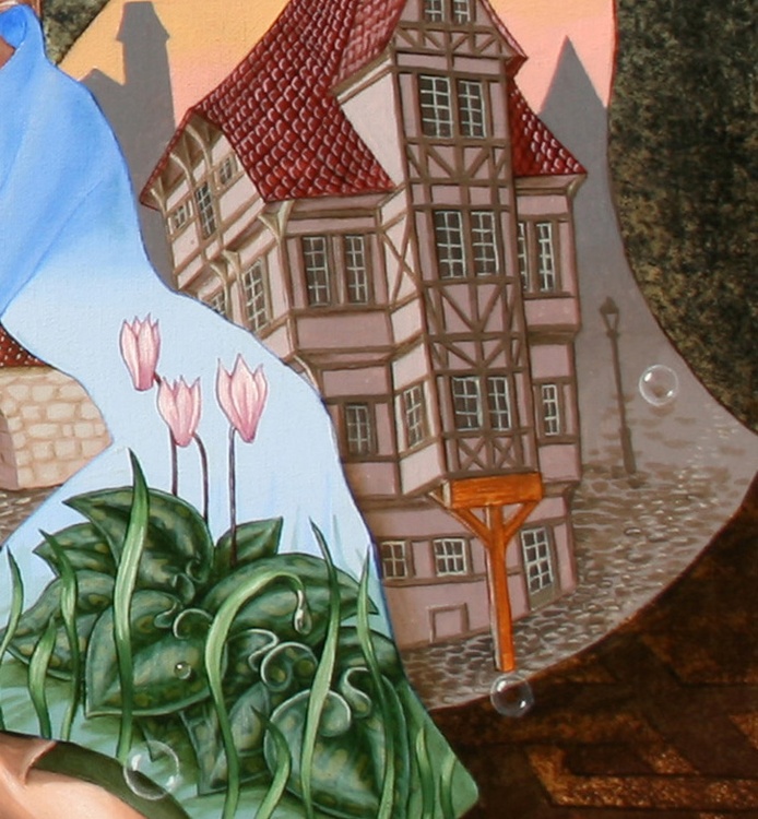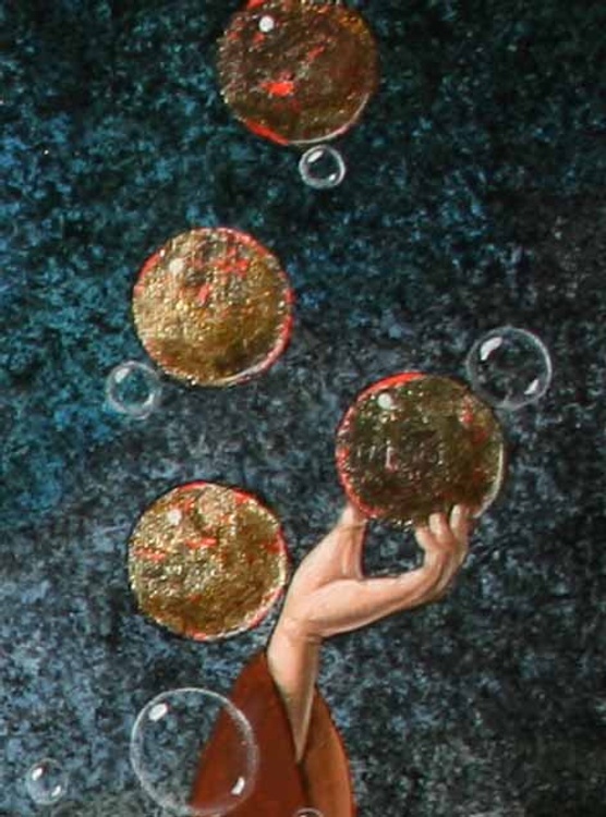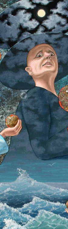 "Jugglers" 2007 76x101cm Oil, Golden Leaves on Canvas